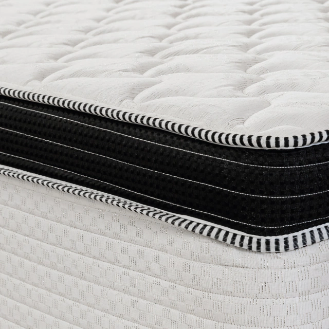 - El marco de espuma perimetral que rodea la estructura de resortes aporta durabilidad y firmeza al colchón.