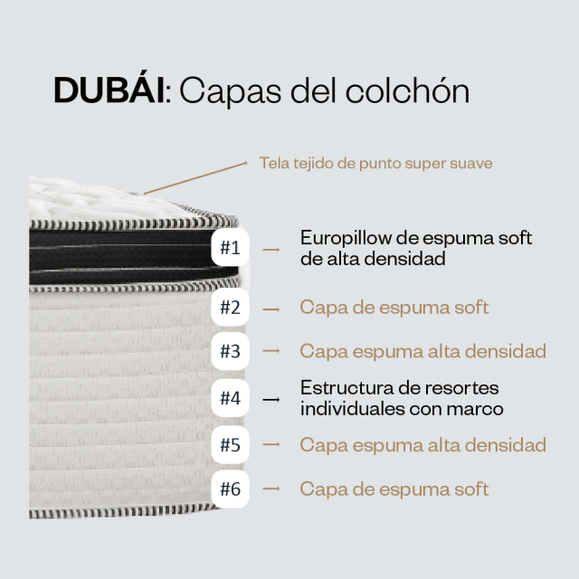 El colchón Dubái se compone de seis capas: