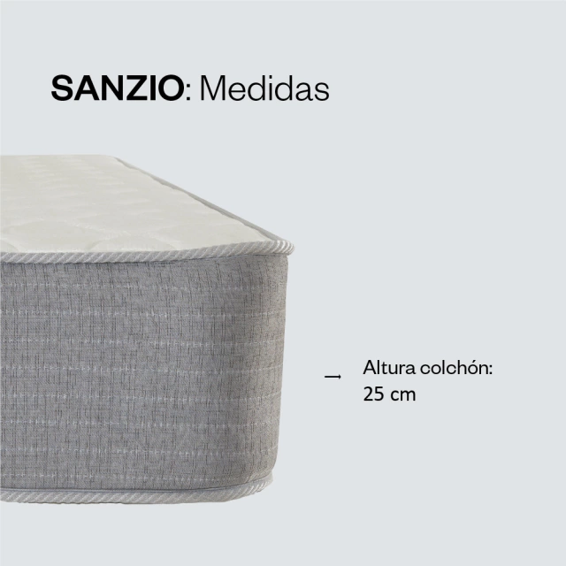 Estructura central de resortes tipo bonell con distribución continua + marco perimetral de espuma de alta densidad para mayor solidez y vida útil.