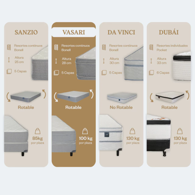 El colchón Vasari se compone de cinco capas: