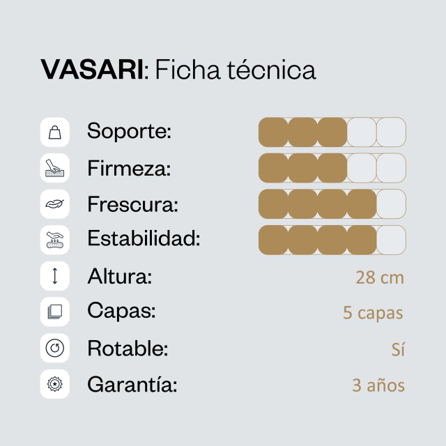 El colchón Vasari se compone de cinco capas: