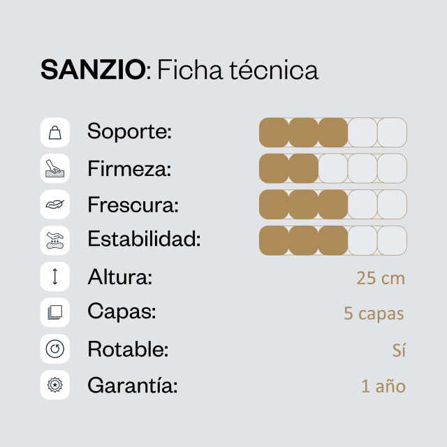 - El colchón puede utilizarse de ambos lados para maximizar la vida útil.