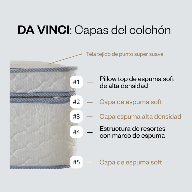El colchón Da Vinci se compone de seis capas: